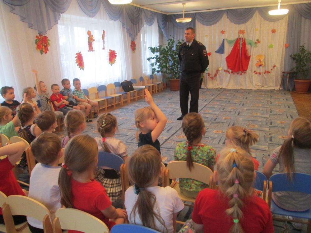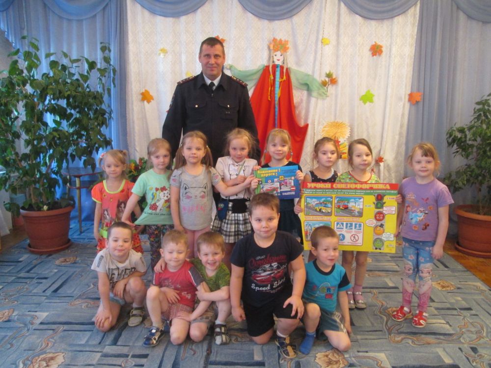 Полицейские встретились с дошколятами с целью формирования у детей модели поведения на улице, в общественном транспорте, в жилой зоне, профилактики дорожно – транспортных происшествий с участием несовершеннолетних.