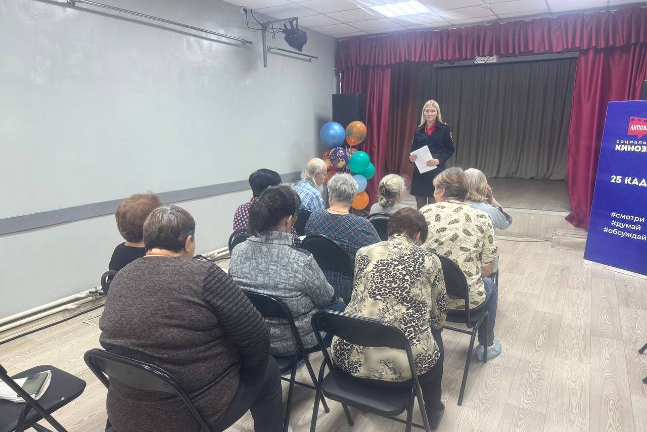 В рамках акции организаторы встретились с пенсионерами города и пожилыми людьми в Доме культуры д.Липовая-1. Сотрудники отдела внутренних дел рассказали собравшимся о таком виде преступлений, как мошенничество, в том числе дистанционное. Они объяснила аудитории, что основная цель преступников неизменна – любым способом завладеть денежными средствами граждан.