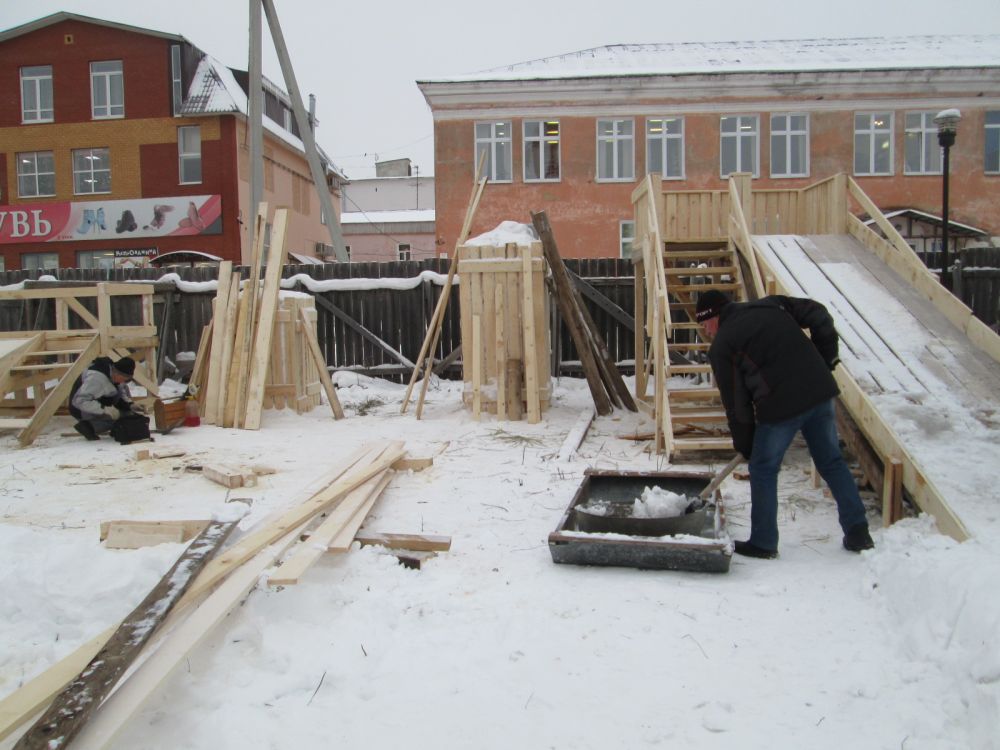 Сразу после деловой встречи, общественники и представители казачества сменили одежду, и приступили к работам по изготовлению каркасов для зимних горок и их заливке, чтобы взрослые и дети Лысьвенского городского округа, прихожане Храма смогли в праздничные Рождественские дни с удовольствием прокатиться с ледяных горок, и стать участникам зимних забав.