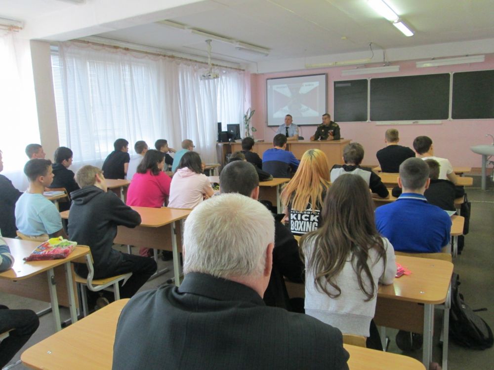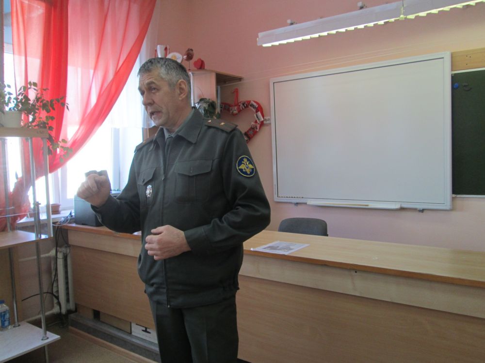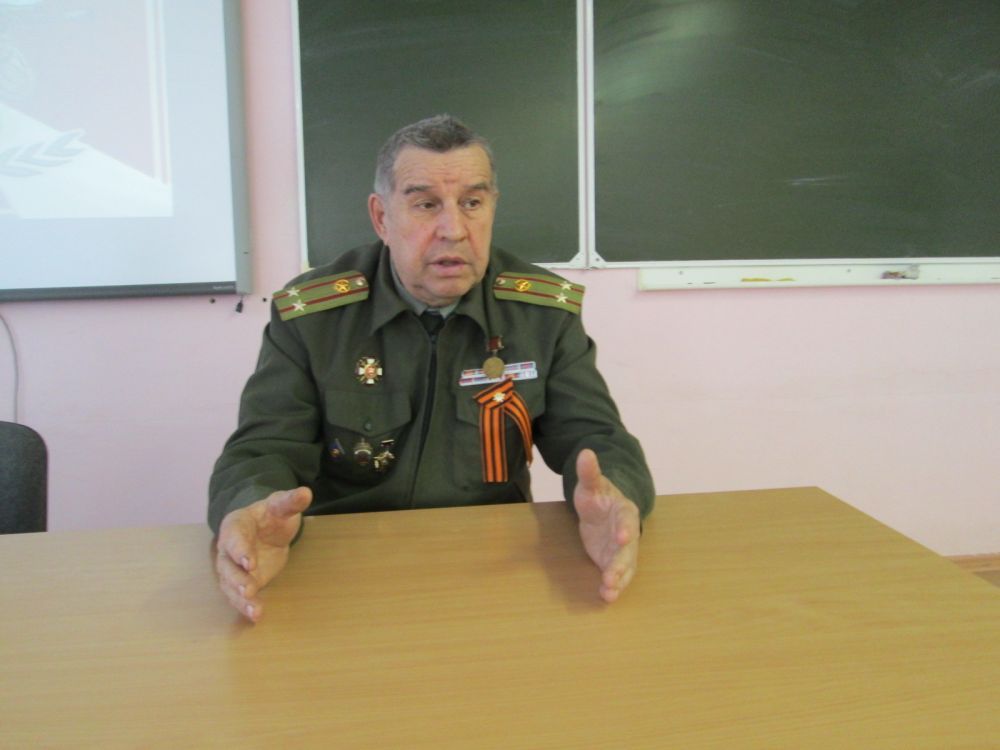 Ветеран, подполковник внутренних войск в отставке, представитель Братства внутренних войск г. Лысьва Корякин Юрий Павлович, в ходе встречи со студентами колледжа, рассказал, как важно юношам пройти службу в рядах Российской армии, где познается настоящая мужская дружба, закаляется характер защитника, формируются лучшие черты характера – четность, порядочность, мужество, отвага, отзывчивость, великодушие. Все эти качества так необходимы каждому человеку в жизни, и в тот момент, когда необходимо встать на защиту своей Родины, как это сделал советский народ в период с 22 июня 1941 по 8 мая 1945, на фронте и в тылу, приближая Победу над фашизмом.