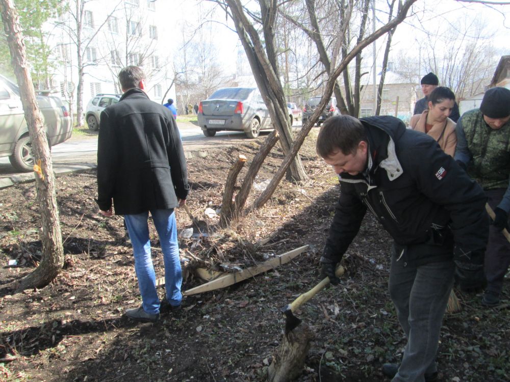 За несколько часов были очищены, от накопившегося за зиму мусора, газоны, помыты окна, а также наведен порядок в подвальных, складских помещениях и гаражах.