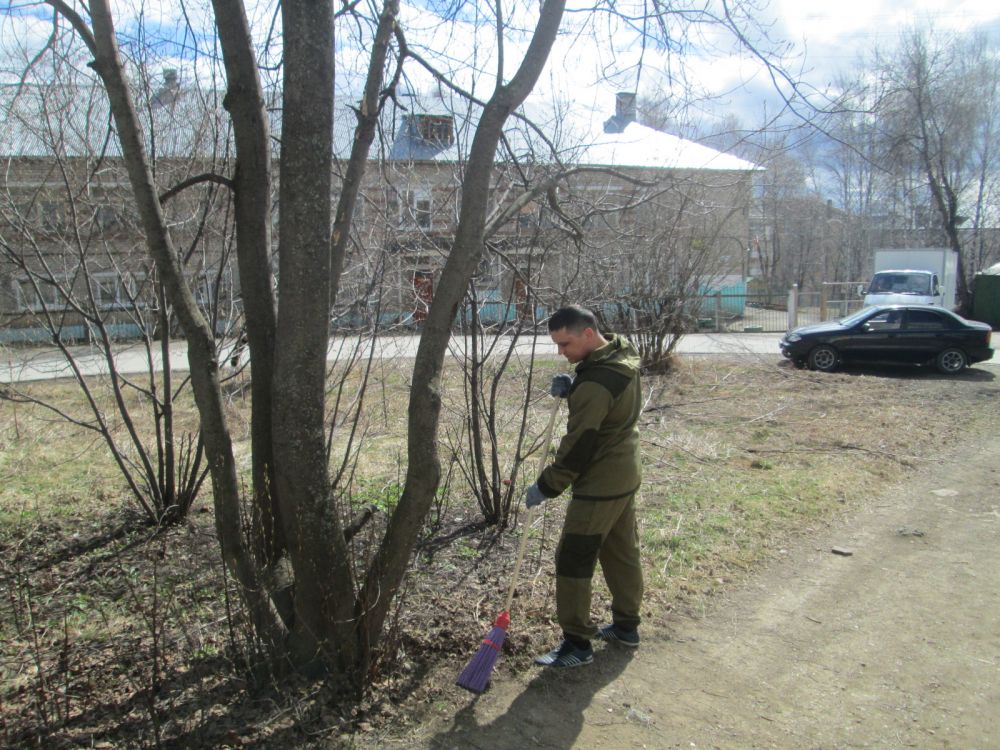 Стражи порядка Лысьвы, включая руководство, надели рабочую форму, взяли в руки метлы, лопаты, кисти и краску, и занялись облагораживанием отдела внутренних дел и прилегающей территории. Служба тыла обеспечила всех сотрудников рабочим инвентарем: метлами, граблями, мешками и прочими необходимыми для уборки инструментами. Убрана прошлогодняя листва и мусор. Проведена уборка в служебных помещениях и личных кабинетах сотрудников.