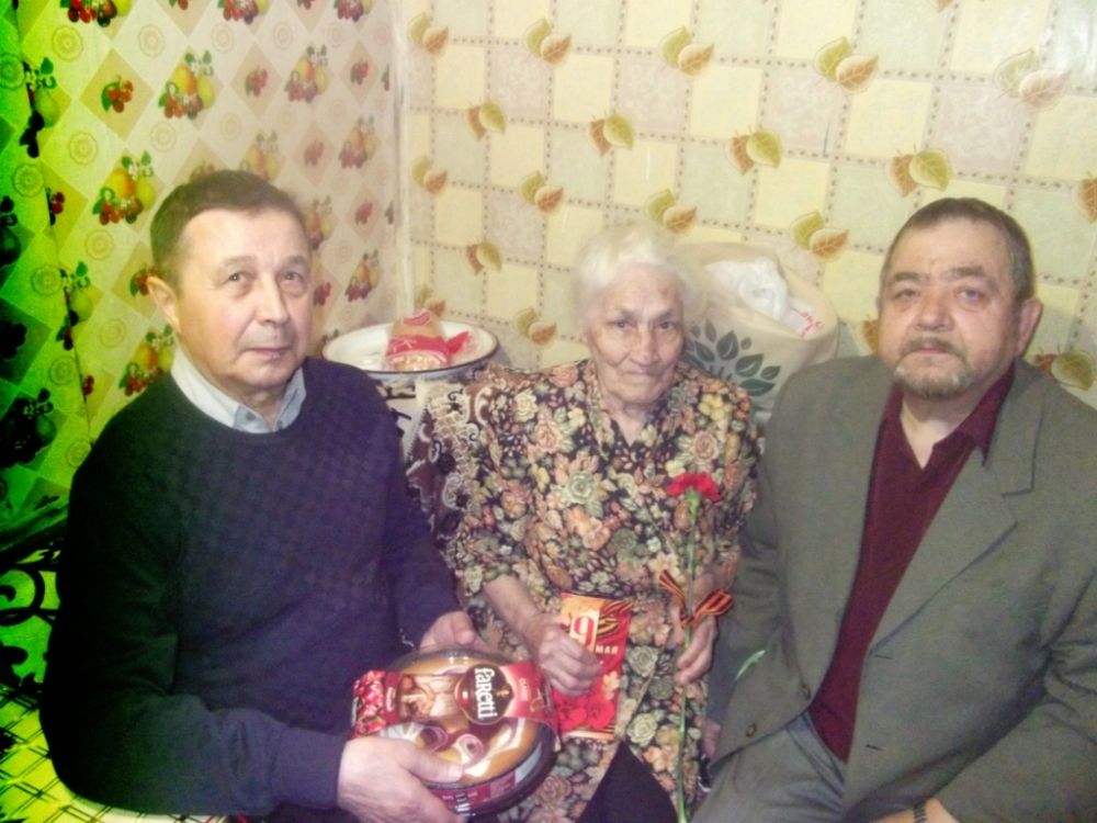 5 мая ветераны вручили цветы, поздравительные открытки, памятные фото и чайные наборы ко Дню Победы труженику тыла Рыловой Александре Сергеевне, а также вдовам ветеранов войны Колесниковой Евдокии Андреевне, Лазейкиной Вере Андреевне, Каганец Ульяне Семеновне, ветерану ОВД Двинских Нелле Петровне.