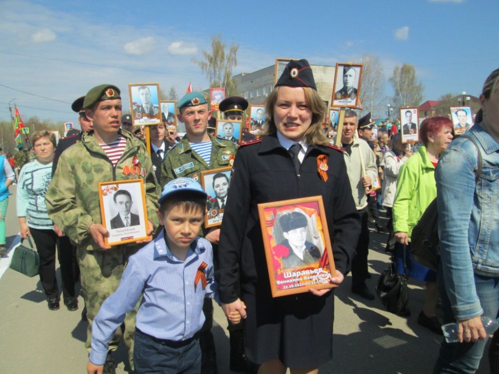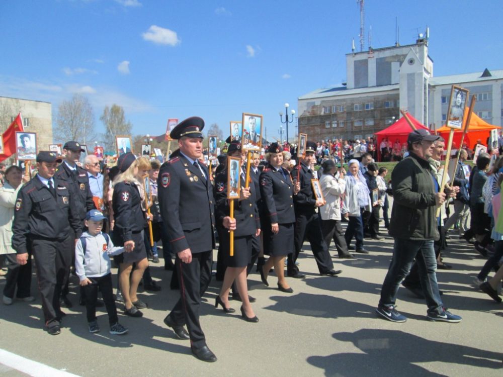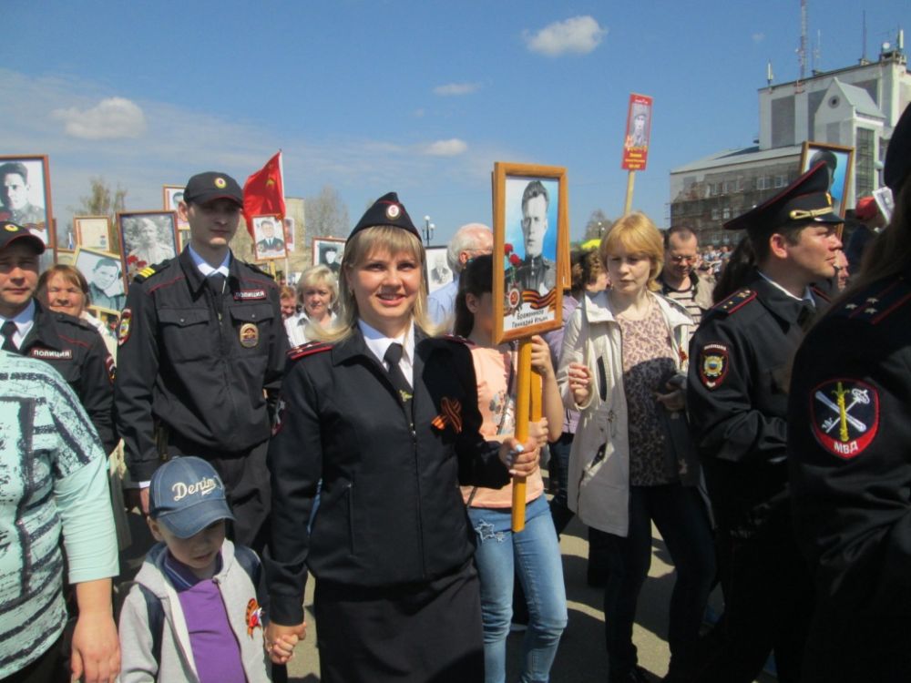 Сотрудники территориального отдела полиции Лысьвы, сегодня, 9 Мая 2019 года, когда вся страна отмечает великий праздник День Победы, не только обеспечили общественный порядок во время проведения мероприятий, но стали участниками Парада Победы и шествия «Бессмертный полк».