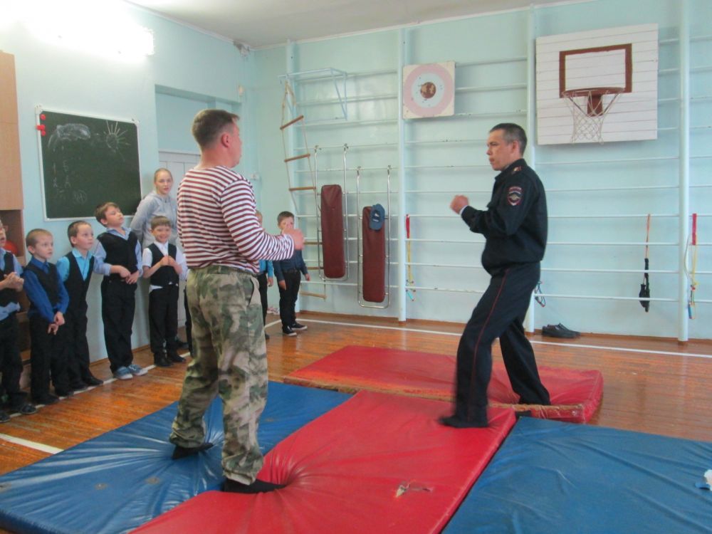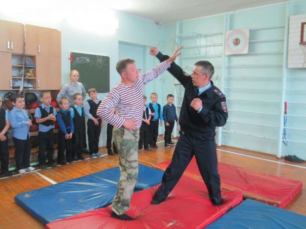 В завершении мероприятия детей и педагогов ждал сюрприз – инициаторы акции устроили показательные выступления по вольной борьбе, школяры и взрослые затаив дыхание смотрели, как ловко стражи порядка владеют приемами борьбы и защиты.