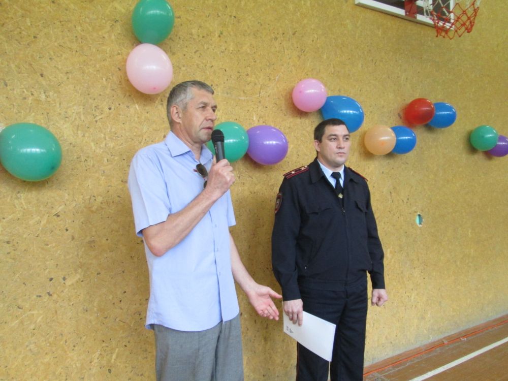 Майор полиции Назыров Динар открыл встречу с собравшимися. Он поздравил педагогов, родителей и школьников с окончанием учебного года, началом летних каникул, а всех учащихся с Международным днем защиты детей.