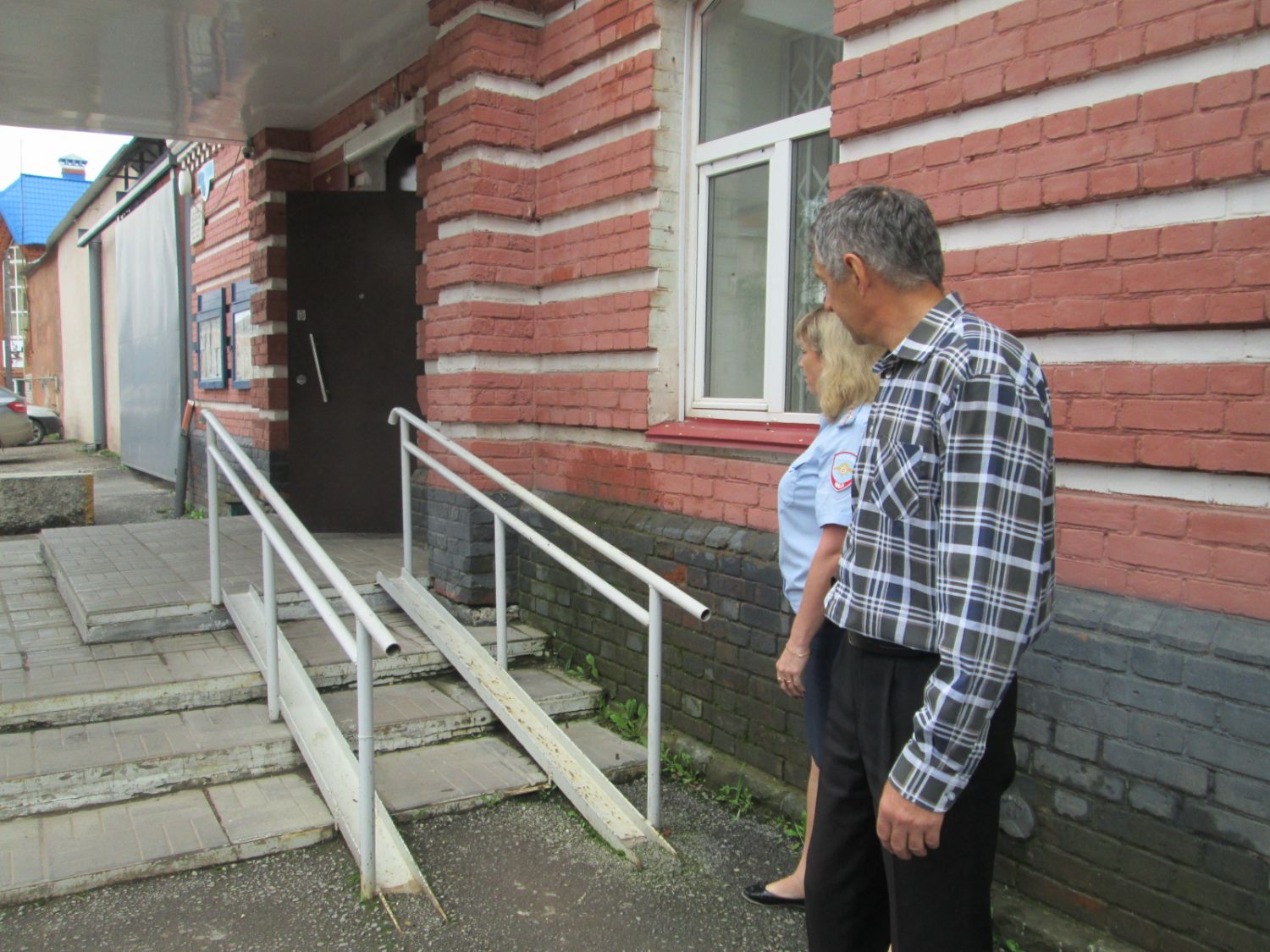 Также общественник проверил как осуществляется доступ посетителей в отдел внутренних дел, на что Андрей Николаевич получил исчерпывающие ответы от старшего инспектора штаба, капитана полиции Натальи Елисеевой. Во время проверки он лично убедился в наличии кнопки вызова сотрудника, пандуса для удобства маломобильных групп населения, удобного места для парковки гражданам о ограниченными возможностями здоровья вблизи входа в здание ОМВД.