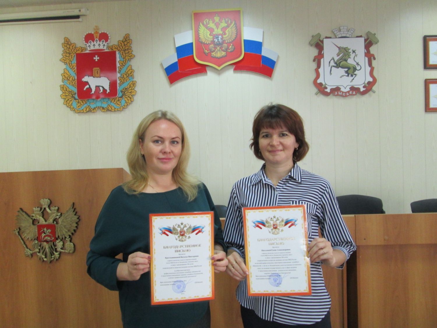 За многолетний добросовестный труд, высокий профессионализм, внимательное отношение к проблемам граждан благодарственными письмами были отмечены Елена Александровна Киселева и Наталья Викторовна Крестьянинова.