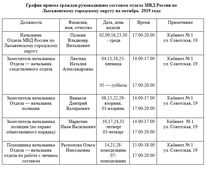 График приема на октябрь 2019