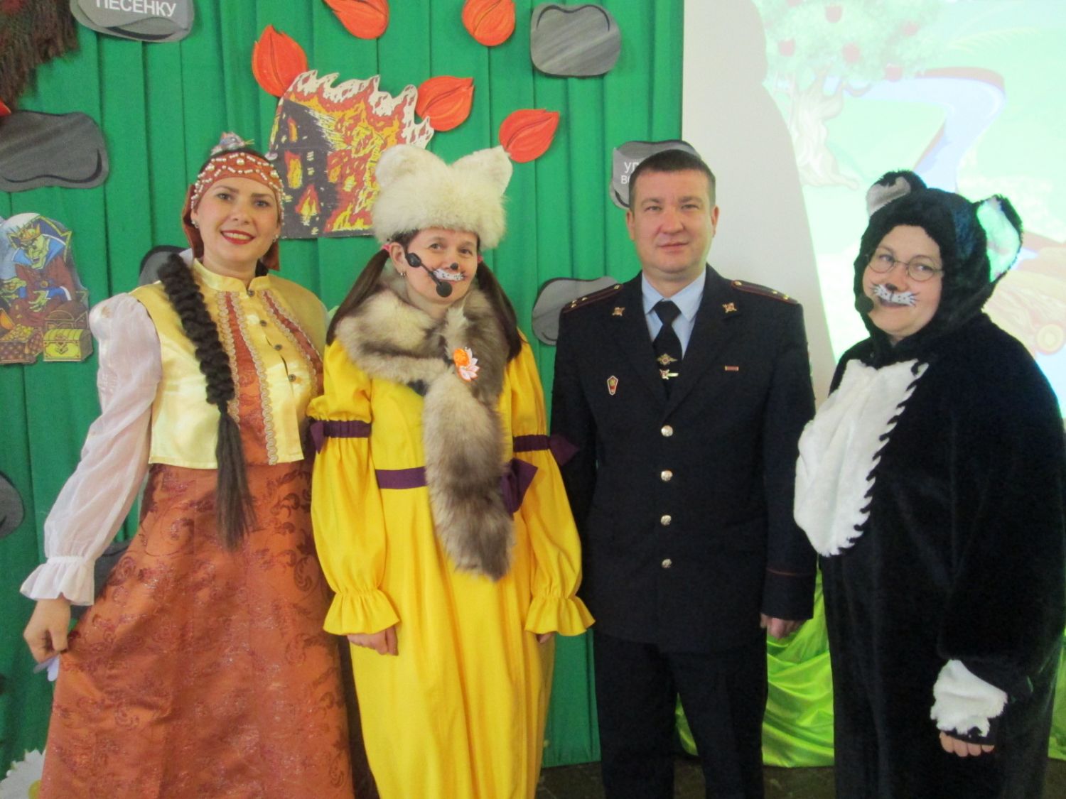 В закрепление полученных знаний детьми в профилактической беседе с полицейским, актеры интерактивной игры наглядно разыграли жизненные ситуации на сценической площадке. Обаятельный Кот ученый из Лукоморья, помогал юным школярам решать задачки по безопасности на протяжении игровой программы.