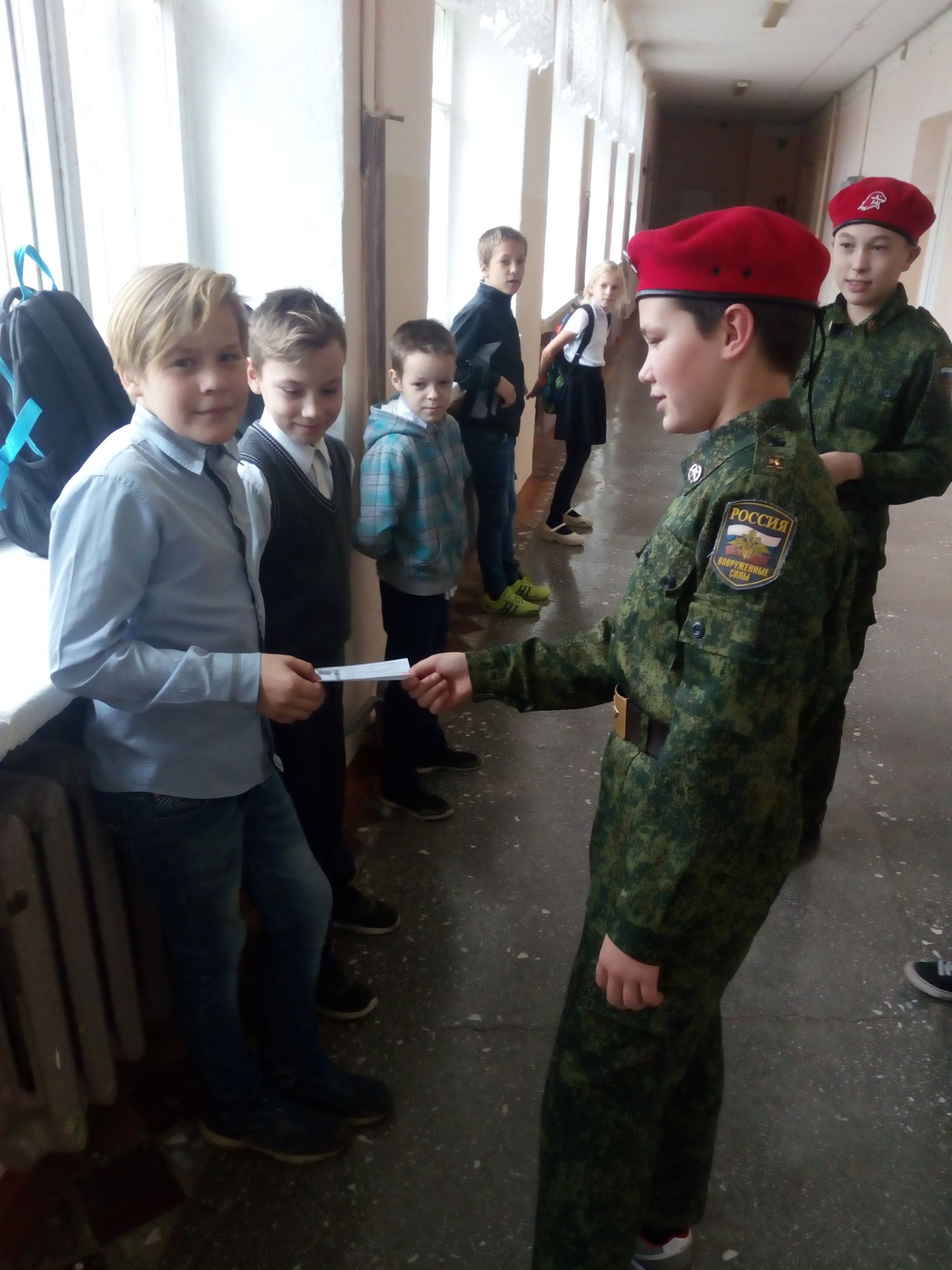 К акции «Безопасные осенние каникулы - 2019» присоединились учащиеся кадетского класса и ребята из отряда «Школьный дозор». Ребята выступили с агитбригадами перед школьниками в учебных заведениях и приняли активное участие в раздаче листовок и информационных буклетов.
