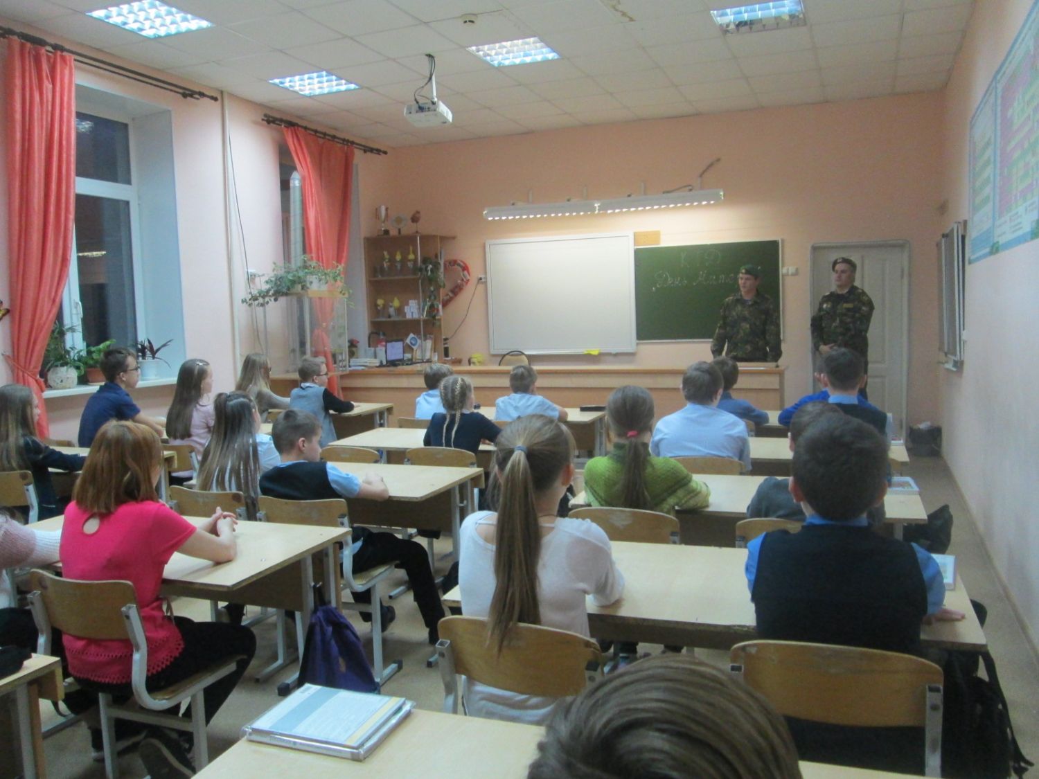 Ветераны «Братства ВВ г.Лысьва» Антон Филимонов и Роман Оганесян выступили перед учащимися, рассказав о необходимости подготовки к службе в рядах Российской армии, призвали ребят вести здоровый образ жизни, активно заниматься физической культурой и спортом, чтобы каждый мальчишка, став взрослым смог защитить свою семью, Отчизну и Родину – мать. Также ветераны внутренних войск призвали всех детей уважительно относиться к своим матерям, оказывать посильную помощь в хозяйственных вопросах, проявлять инициативу при оказании помощи в домашних делах.