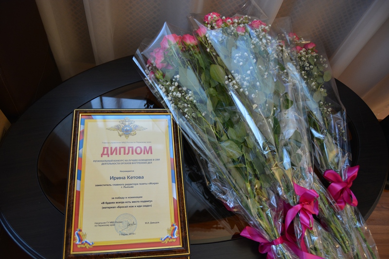 Руководство отдела МВД России по Лысьвенскому городскому округу, представители Общественного совета поздравляют Ирину Александровну Кетову с победой в номинации «В буднях всегда есть место подвигу» регионального конкурса на лучшее освещение в СМИ деятельности органов внутренних дел, с пожеланиями творческих успехов, выражая уверенность в дальнейшем плодотворном взаимодействии.