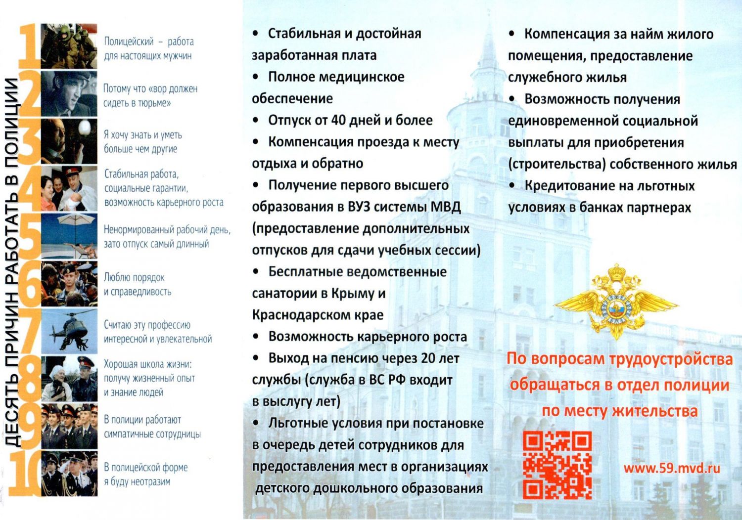 - возможность бесплатного обучения в ВУЗах МВД России;