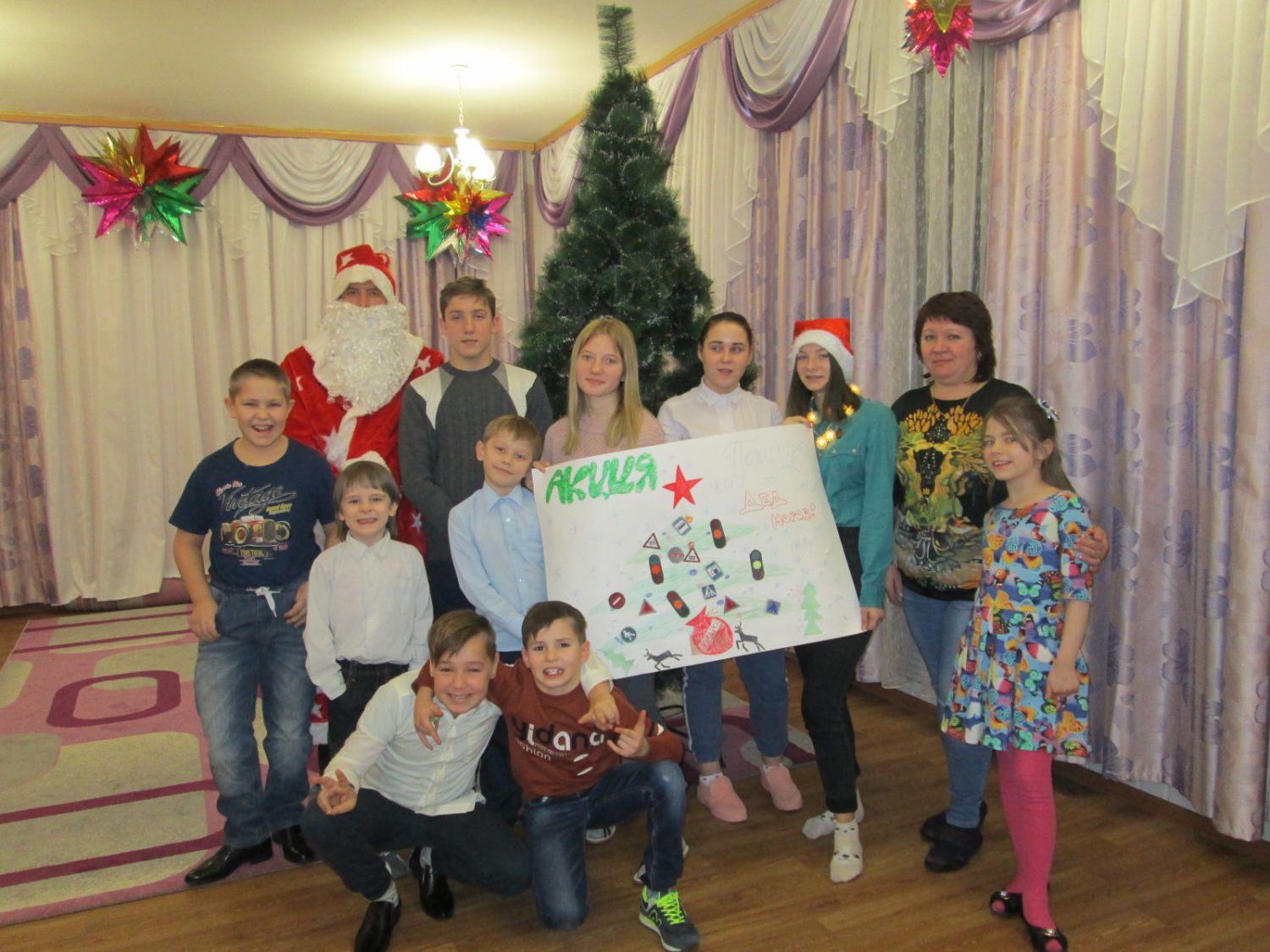 Акция «Полицейский Дед Мороз» открыл профилактическим мероприятием для воспитанников Центра помощи детям, оставшимся без попечения родителей. Мероприятие прошло в форме творческого занятия, в ходе которого ребята вместе с полицейским изготовили праздничную новогоднюю стенгазету «ПДД мы знаем, все дружно соблюдаем!».
