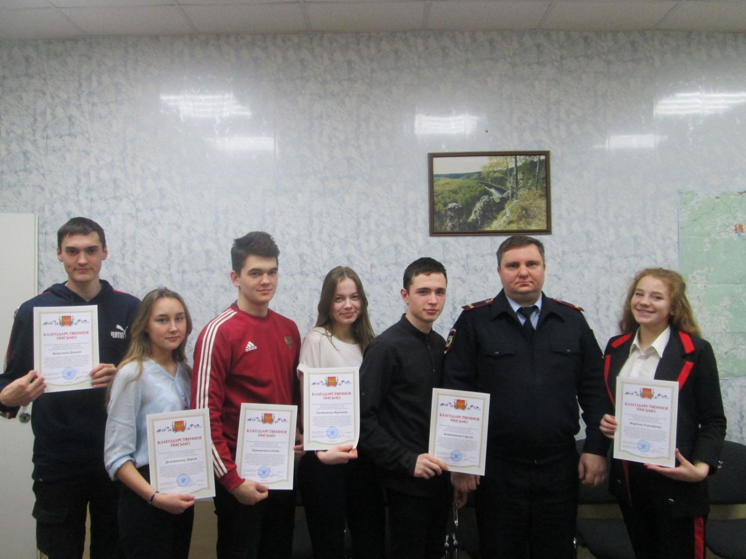 В завершении встречи начальник отдела вручил благодарственные письма студентам, активно принимавшим участие в совместных мероприятиях с полицейскими, по итогам 2019 года, призвав к поступлению в вузы МВД и трудоустройству в органы внутренних дел родного города.