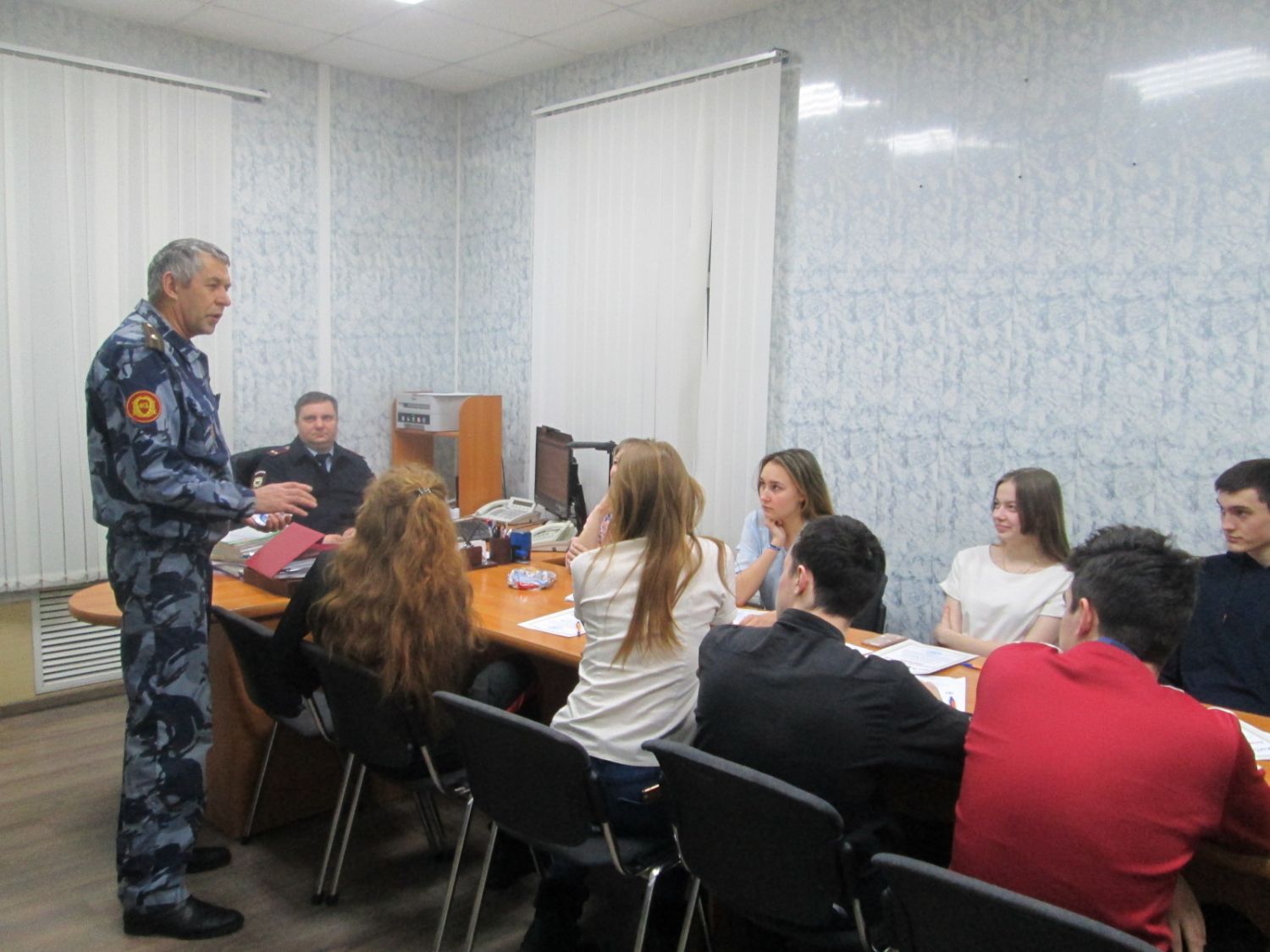 Владимир Витальевич, в свою очередь, рассказал гостям, по каким причинам сам выбрал службу в полиции, какими деловыми и моральными качествами должен обладать страж порядка, познакомил с алгоритмом результативной работы, подробно остановившись на службе в уголовном розыске, а также ответил на все интересующие вопросы девушек и юношей.